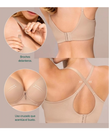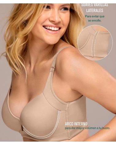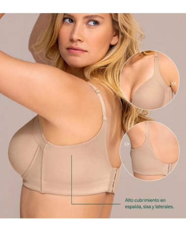 Sujetador ideal para aquellas mujeres que buscan estilizar su figura. Debido a su alto cubrimiento en copas, sisa y espalda, mantiene el busto en su lugar y da la seguridad que necesitas eliminando esos incómodos rollitos de estas zonas; además, con sus copas suaves y ligeras, ¡no lo sentirás!.